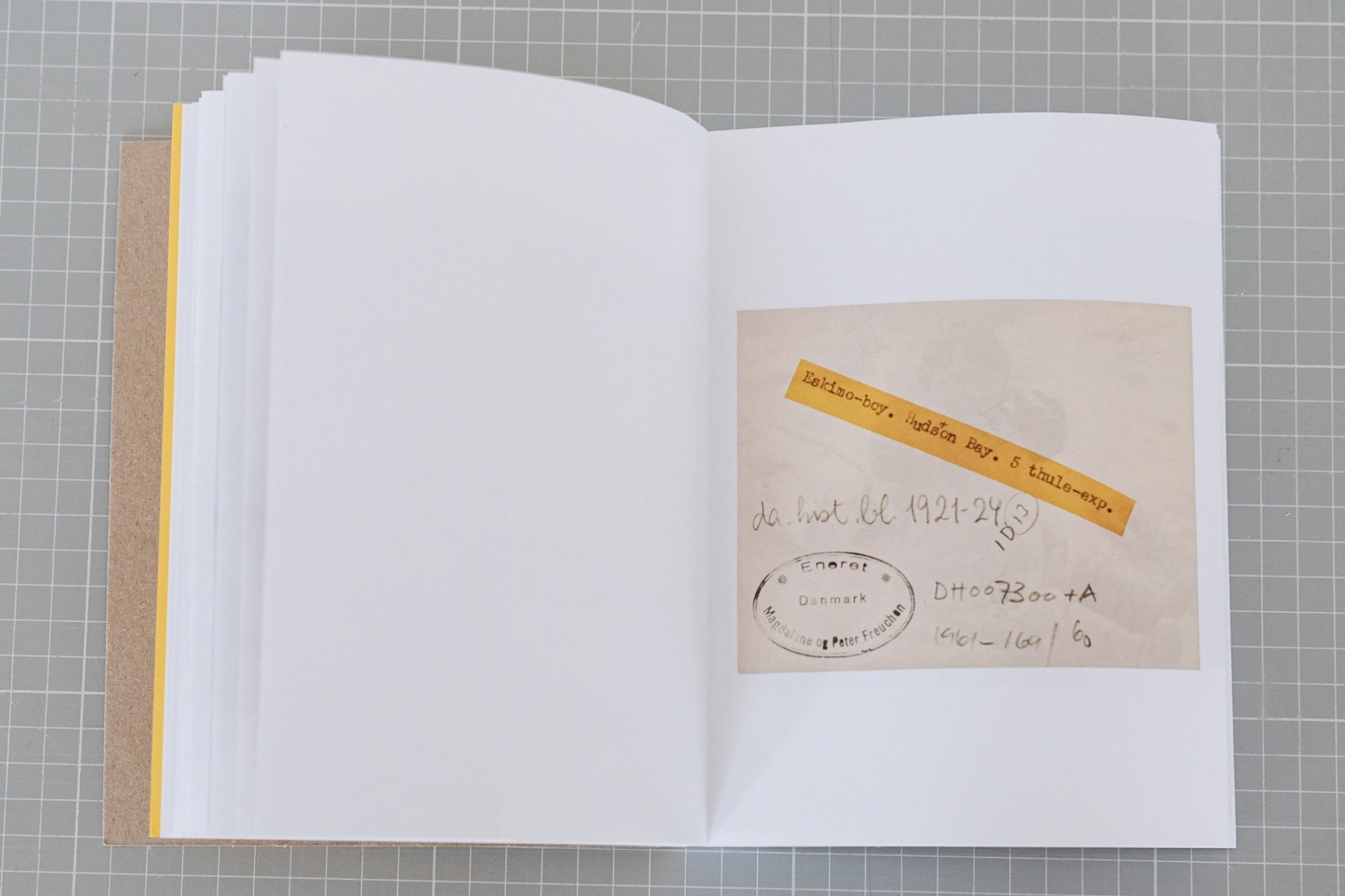 The dummy book focuses on the role of photography and the archive in the colonial relationship between Greenland and Denmark from a conceptual perspective.